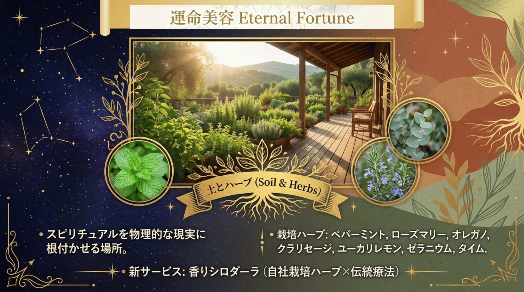運命美容Eternal Fortuneでは、あなたの運命をより美しく、豊かに輝かせるために、占い・アロマ・アーユルヴェーダなどいくつのコンテンツを提供しています。