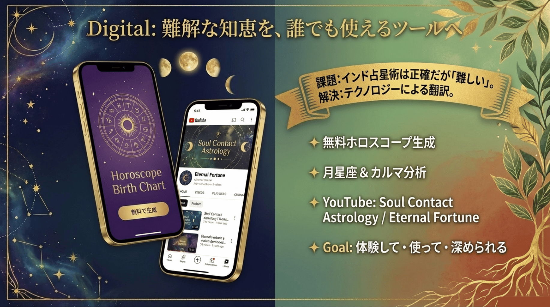 当サイトでは、特にインド占星術(ジョーティシュ)をベースに、月星座、ナクシャトラ、数秘術などを駆使して、あなたの運命を深く紐解きます。