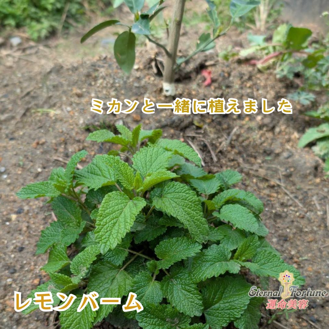 昨年から協生栽培の畑づくりにチャレンジしており、果樹と野菜、ハーブの混成でレモンバームも植えさせて貰いました。果樹の受粉の助けになればと思っています。
