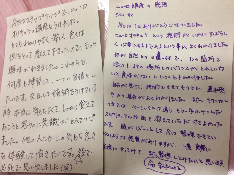 今日はステップアップでニューロオリキュラの講座を受けました。