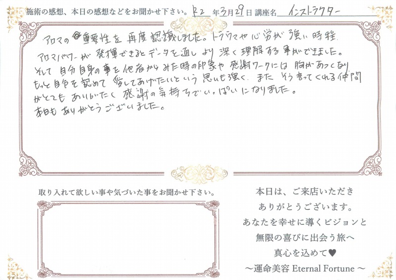 運命美容(R)心理学 アロマ占いインストラクタークラス感想