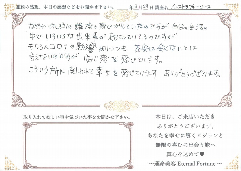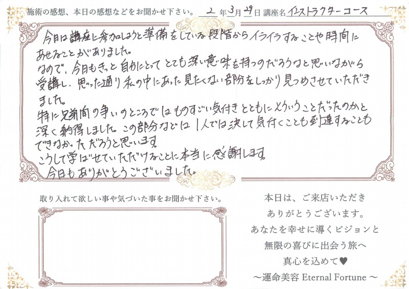 インストラクターコース本当にありがとうございました。