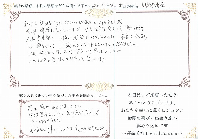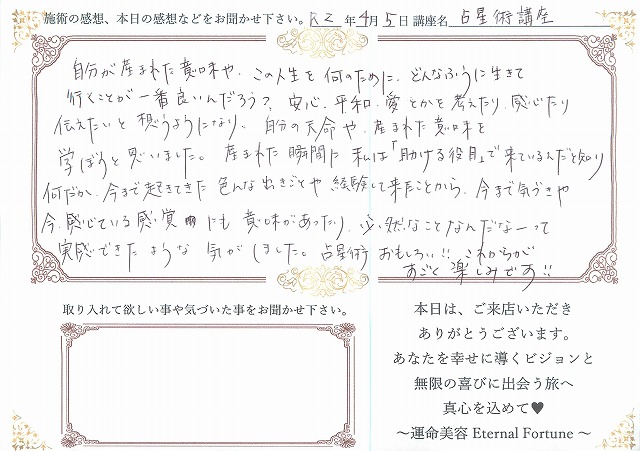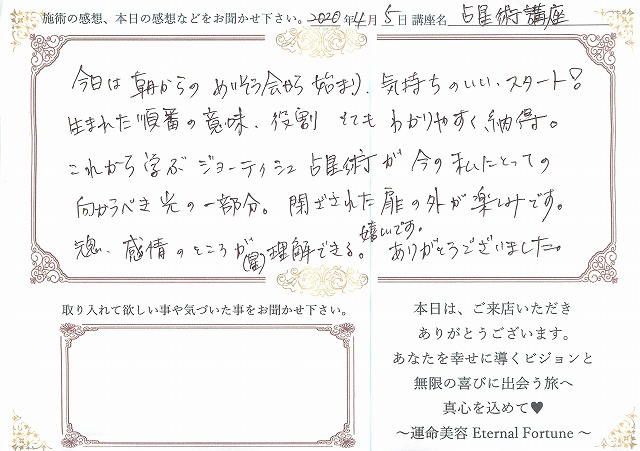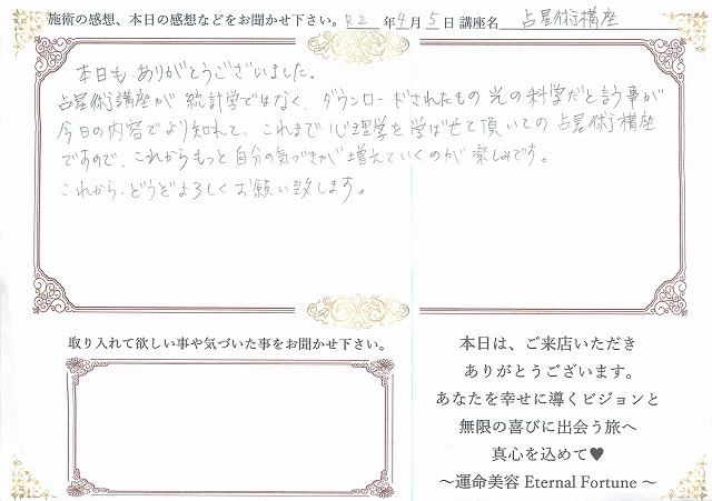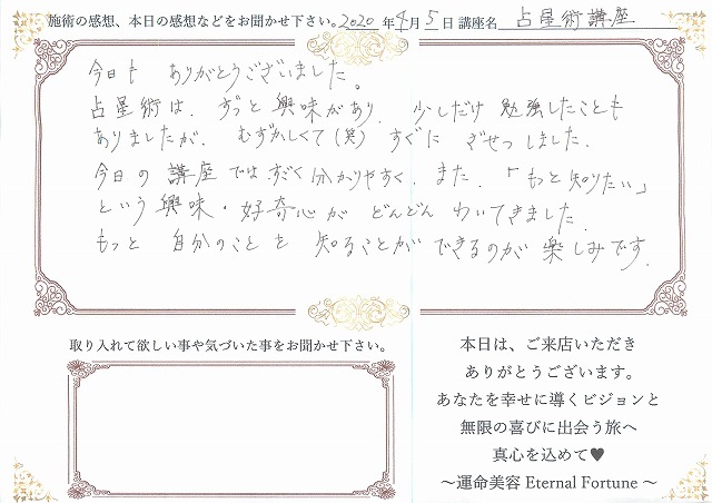 占星学講座の感想をご紹介させて頂きます。